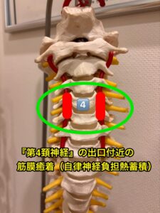 原因は、頚椎4番から出る第4頚神経(C4)の出口付近で『頚長筋』の筋膜に『11月の自律神経負担の熱』が蓄積